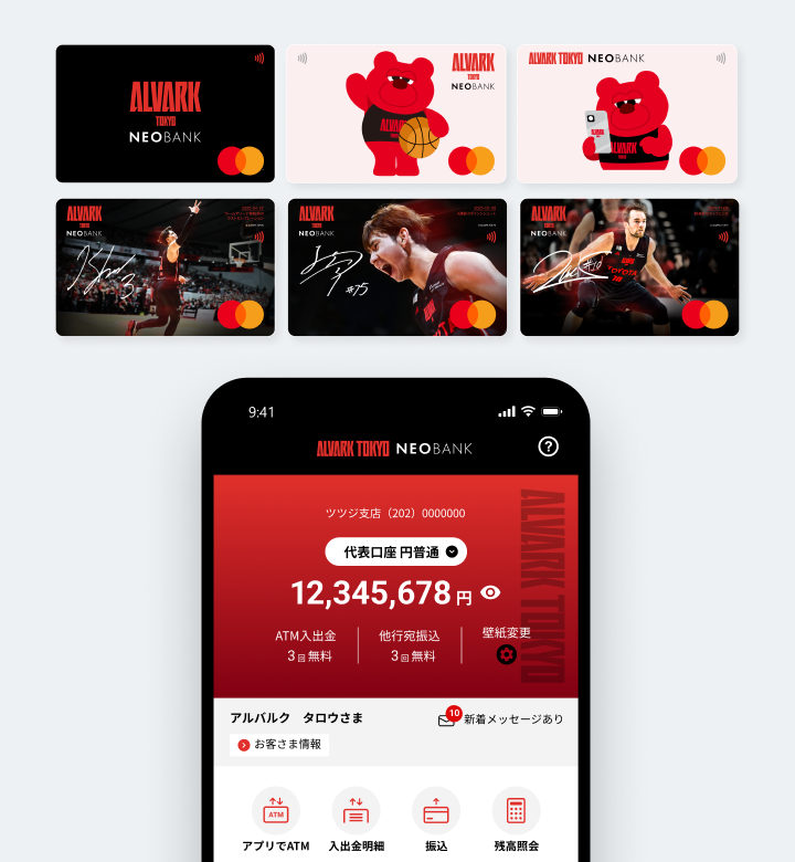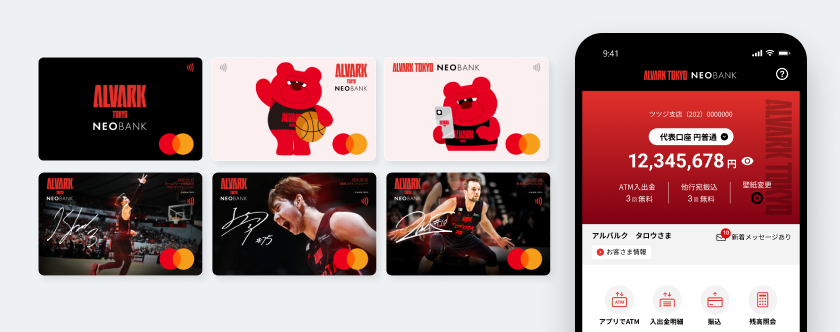 オリジナルデザインのスマホデビットやアプリの壁紙など、アルバルク東京NEOBANKなら普段の銀行取引も楽しく!