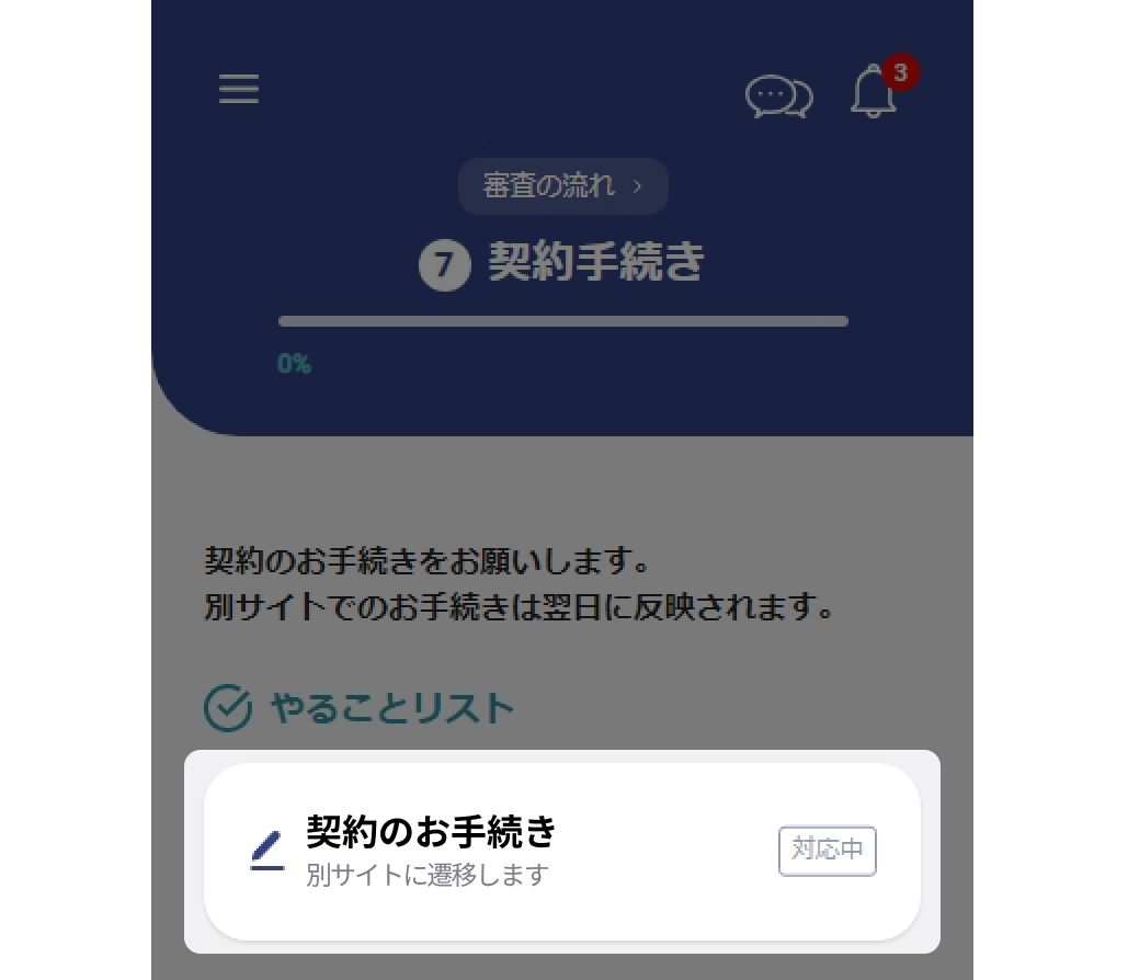 ホーム画面のやることリストに「契約のお手続き」が表示されるので、案内を確認しお手続きを進めてください。