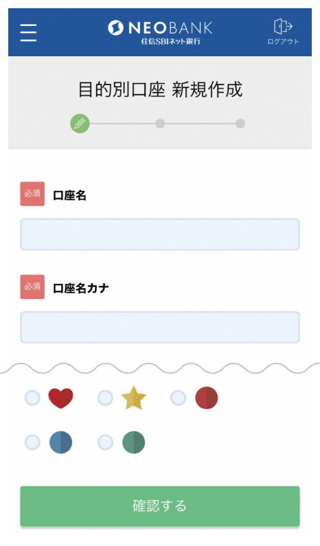 目的別口座は自分で口座名をつけることができます。目標金額や期日を設定し達成状況も確認できます。